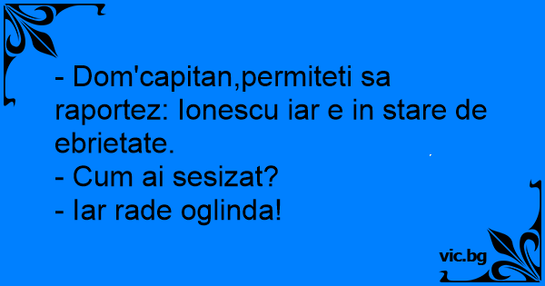 - Dom'capitan,permiteti sa raportez: Ionescu iar e in stare de ebrietate.