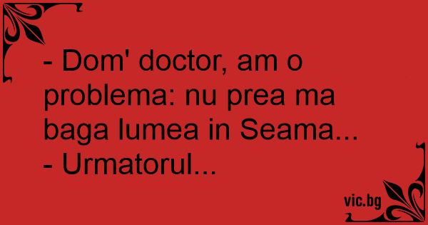 - Dom' doctor, am o problema: nu prea ma baga lumea in Seama...
