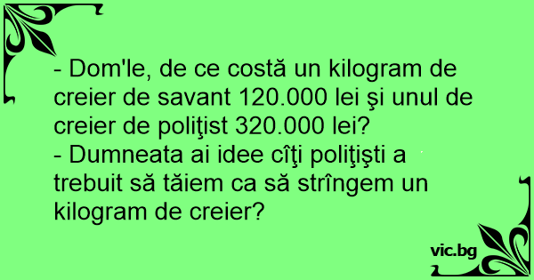 - Dom'le, de ce costă un kilogram de creier de savant 120.000 lei şi unul de creier de poliţist 320.000 lei?