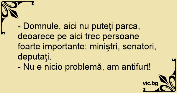 - Domnule, aici nu puteţi parca, deoarece pe aici trec persoane foarte importante: miniştri, senatori, deputaţi.