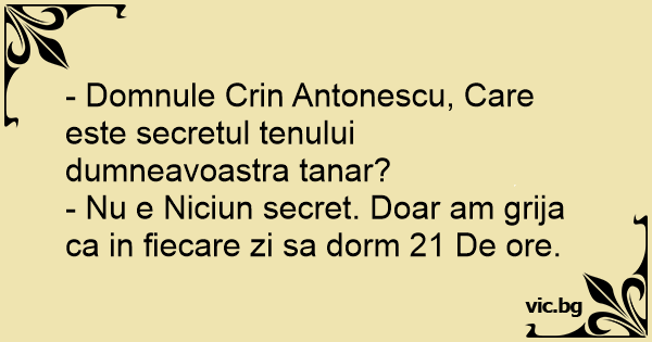 - Nu e Niciun secret. Doar am grija ca in fiecare zi sa dorm 21 De ore.