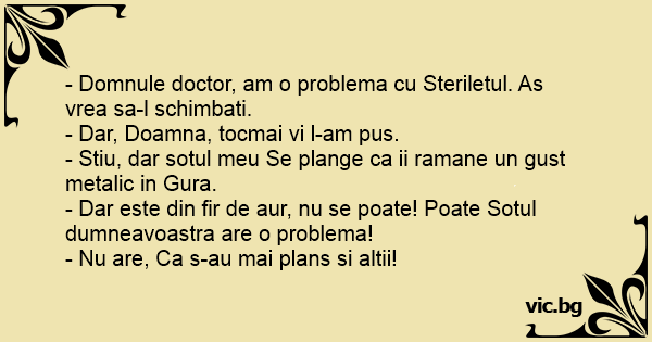 - Domnule doctor, am o problema cu Steriletul. As vrea sa-l schimbati.