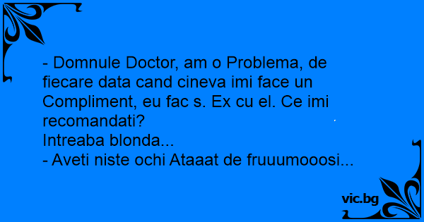 - Domnule Doctor, am o Problema, de fiecare data cand cineva imi face un Compliment, eu fac s. Ex cu el. Ce imi recomandati?