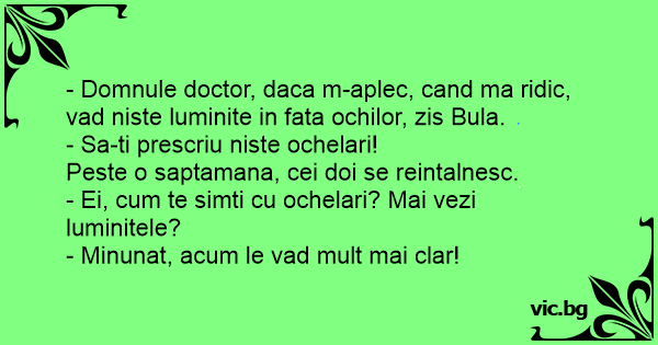 - Domnule doctor, daca m-aplec, cand ma ridic, vad niste luminite in fata ochilor, zis Bula.