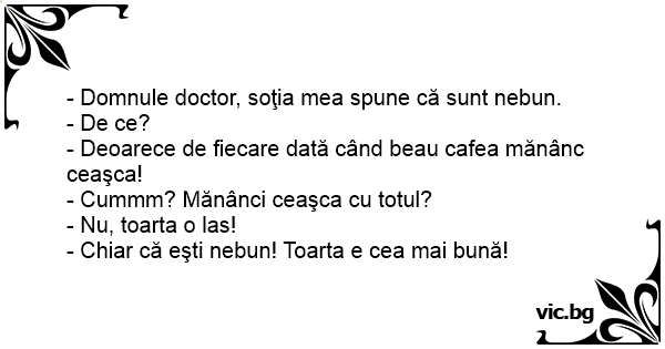 - Domnule doctor, soţia mea spune că sunt nebun.