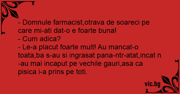 - Domnule farmacist,otrava de soareci pe care mi-ati dat-o e foarte buna!