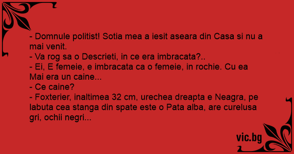- Domnule politist! Sotia mea a iesit aseara din Casa si nu a mai venit.
