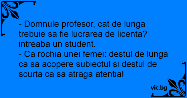 - Domnule profesor, cat de lunga trebuie sa fie lucrarea de licenta? intreaba un student.