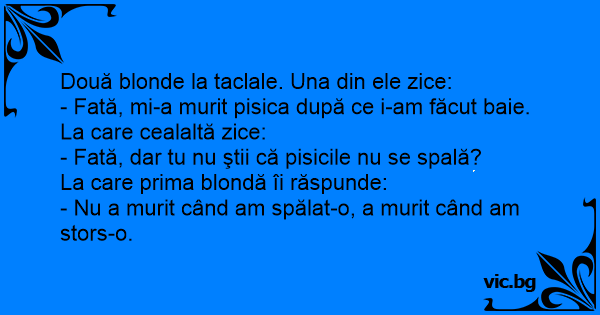 - Fată, mi-a murit pisica după ce i-am făcut baie.