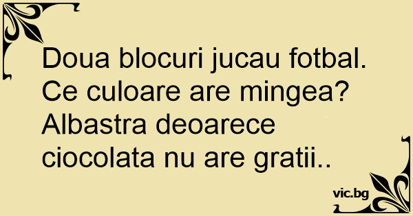 Doua blocuri jucau fotbal. Ce culoare are mingea?