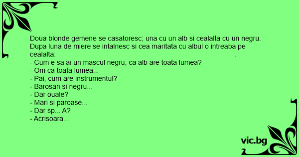 Dupa luna de miere se intalnesc si cea maritata cu albul o intreaba pe cealalta: