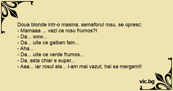 Doua blonde intr-o masina, semaforul rosu, se opresc: