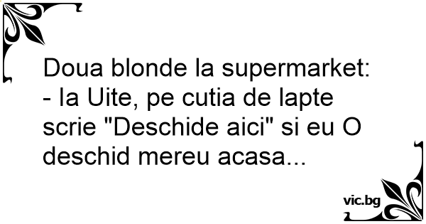 - Ia Uite, pe cutia de lapte scrie "Deschide aici" si eu O deschid mereu acasa...