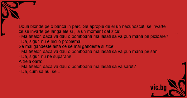 Doua blonde pe o banca in parc. Se apropie de el un necunoscut, se invarte ce se invarte pe langa ele si , la un moment dat zice: