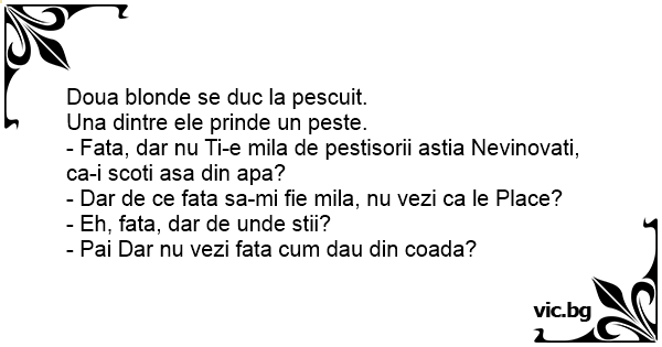 - Fata, dar nu Ti-e mila de pestisorii astia Nevinovati, ca-i scoti asa din apa?
