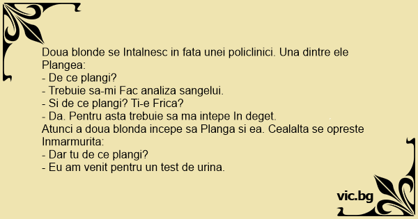 Doua blonde se Intalnesc in fata unei policlinici. Una dintre ele Plangea: