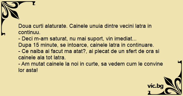 Doua curti alaturate. Cainele unuia dintre vecini latra in continuu.