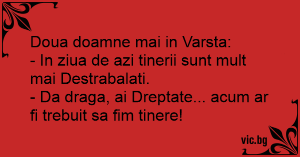 - Da draga, ai Dreptate... acum ar fi trebuit sa fim tinere!