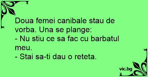 Doua femei canibale stau de vorba. Una se plange: