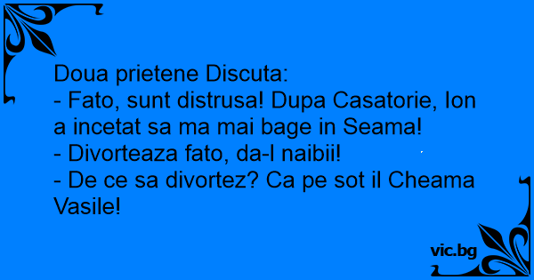 - De ce sa divortez? Ca pe sot il Cheama Vasile!