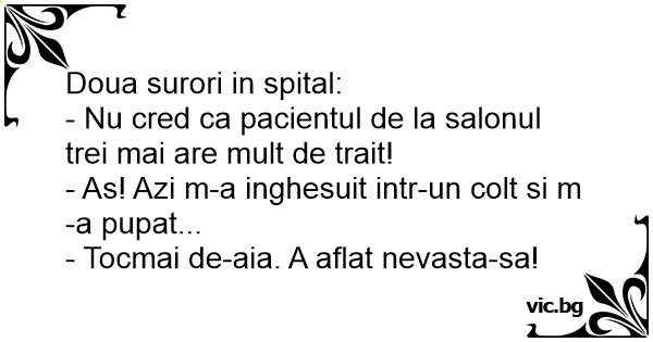 - Nu cred ca pacientul de la salonul trei mai are mult de trait!