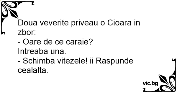 - Schimba vitezele! ii Raspunde cealalta.