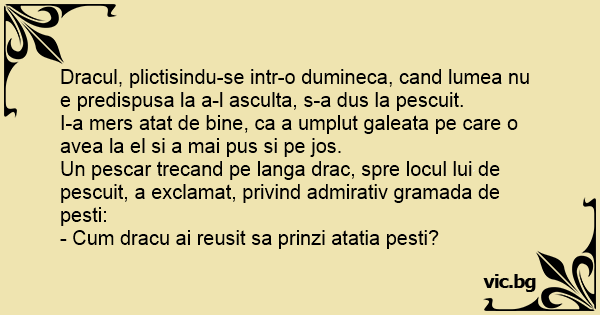 Dracul, plictisindu-se intr-o dumineca, cand lumea nu e predispusa la a-l asculta, s-a dus la pescuit.