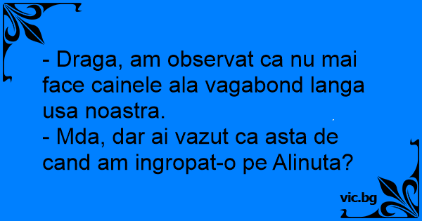 - Draga, am observat ca nu mai face cainele ala vagabond langa usa noastra.