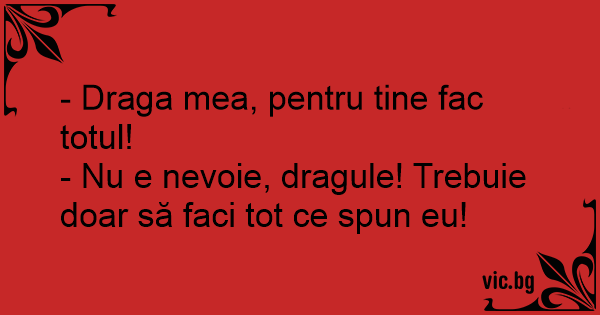 - Nu e nevoie, dragule! Trebuie doar să faci tot ce spun eu!
