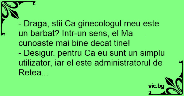 - Draga, stii Ca ginecologul meu este un barbat? Intr-un sens, el Ma cunoaste mai bine decat tine!