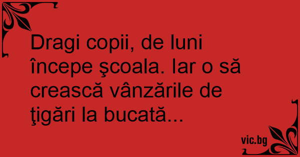 Dragi copii, de luni începe şcoala. Iar o să crească vânzările de ţigări la bucată...