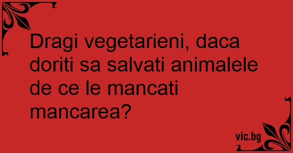 Dragi vegetarieni, daca doriti sa salvati animalele de ce le mancati mancarea?