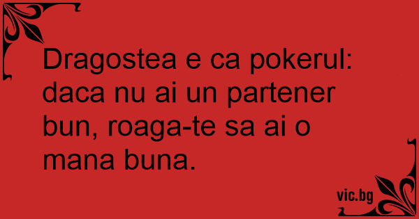 Dragostea e ca pokerul: daca nu ai un partener bun, roaga-te sa ai o mana buna.