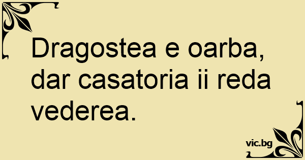 Dragostea e oarba, dar casatoria ii reda vederea.