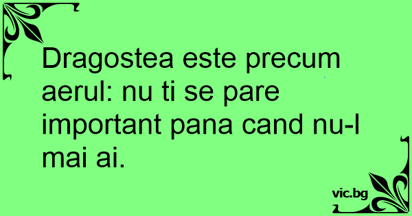 Dragostea este precum aerul: nu ti se pare important pana cand nu-l mai ai.