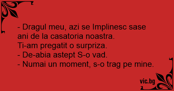 - Dragul meu, azi se Implinesc sase ani de la casatoria noastra.