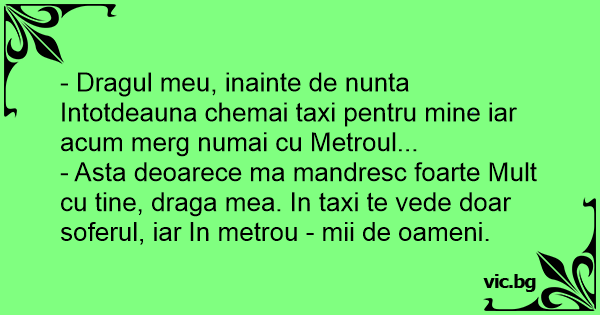 - Dragul meu, inainte de nunta Intotdeauna chemai taxi pentru mine iar acum merg numai cu Metroul...