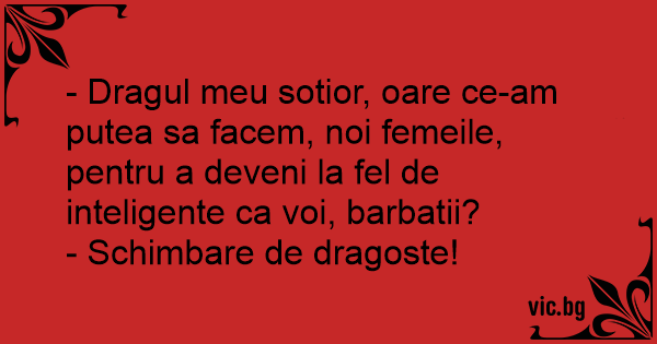 - Dragul meu sotior, oare ce-am putea sa facem, noi femeile, pentru a deveni la fel de inteligente ca voi, barbatii?
