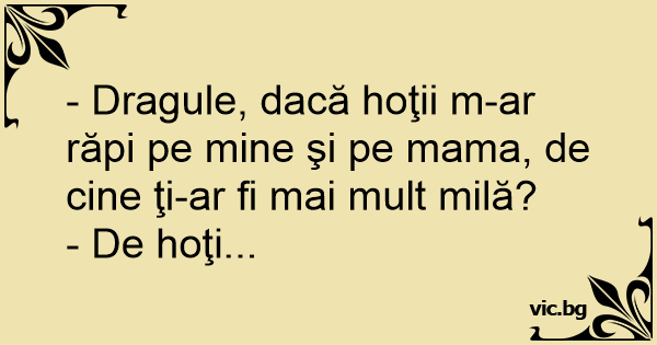 - Dragule, dacă hoţii m-ar răpi pe mine şi pe mama, de cine ţi-ar fi mai mult milă?