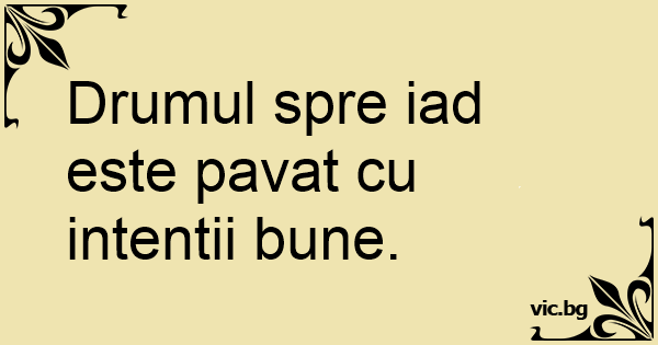 Drumul spre iad este pavat cu intentii bune.