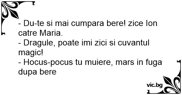- Hocus-pocus tu muiere, mars in fuga dupa bere