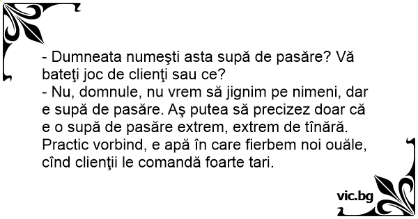 - Dumneata numeşti asta supă de pasăre? Vă bateţi joc de clienţi sau ce?