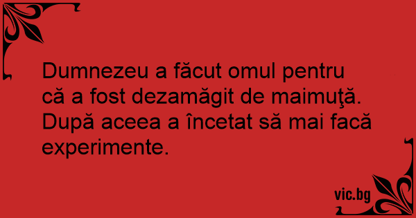 Dumnezeu a făcut omul pentru că a fost dezamăgit de maimuţă.