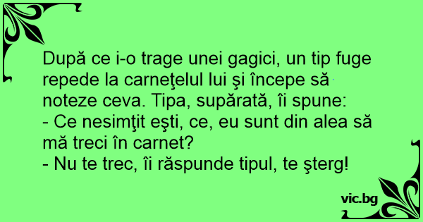 După ce i-o trage unei gagici, un tip fuge repede la carneţelul lui şi începe să noteze ceva. Tipa, supărată, îi spune: