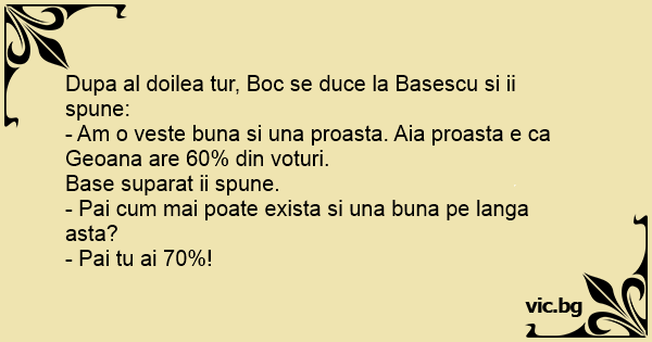 - Am o veste buna si una proasta. Aia proasta e ca Geoana are 60% din voturi.