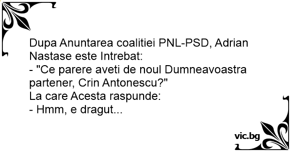 - "Ce parere aveti de noul Dumneavoastra partener, Crin Antonescu?"