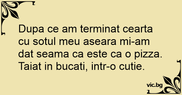 Dupa ce am terminat cearta cu sotul meu aseara mi-am dat seama ca este ca o pizza.