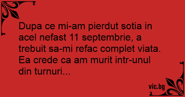 Dupa ce mi-am pierdut sotia in acel nefast 11 septembrie, a trebuit sa-mi refac complet viata.