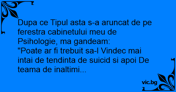 Dupa ce Tipul asta s-a aruncat de pe ferestra cabinetului meu de Psihologie, ma gandeam: