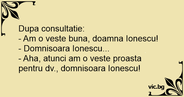 - Aha, atunci am o veste proasta pentru dv., domnisoara Ionescu!